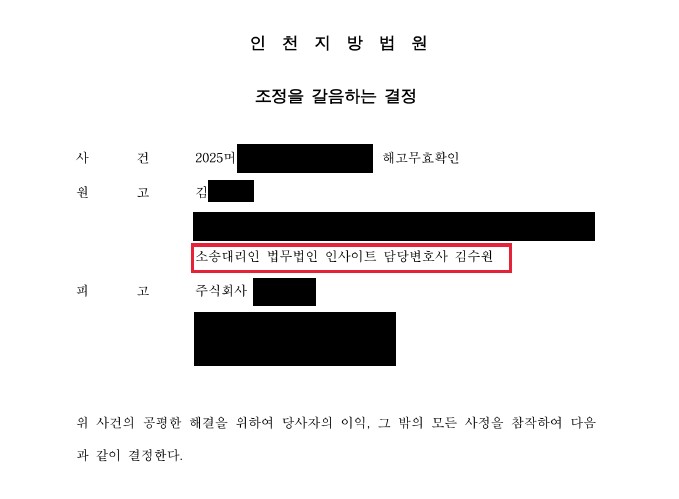 셋째, 장기간 소송으로 이어질 경우 발생할 수 있는 의뢰인의 시간적·경제적 부담을 고려하여 조정 단계에서 현실적인 보상 수준을 확보하는 방향으로 협상을 진행했습니다.
