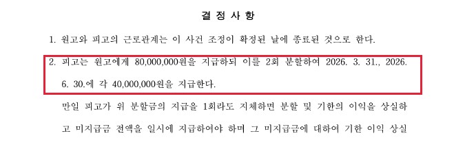 법원은 사건의 공평한 해결을 위해 조정을 갈음하는 결정을 내렸고, 그 결과 다음과 같은 내용으로 분쟁이 종결되었습니다.
